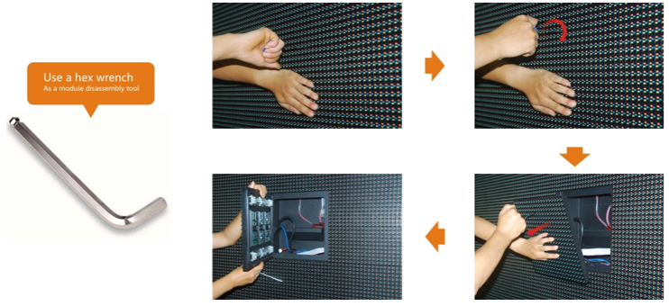 The spec for frontside service LED display is saving space ,for the installation of the mosaic structure, the space is very precious,so as not to leave too much place for maintenance the channel,so the maintenance can greatly reduce the overall thickness of the LED display screen structure, not only can blend well with the surrounding building environment,meanwhile save space while ensuring effect, between the module and the cabinet is installed without screws, more convenient in assembly, a few seconds can be removed by six angle screwdriver, greatly improve work efficiency .The cabinet light, maximum thickness is 115cm, weight is 26kg, compared with similar products, light a lot.